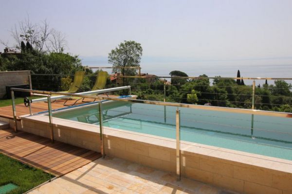 Taras prowadzi do ogrodu krajobrazowego o powierzchni około 200 m² z basenem i pięknym widokiem na morze.