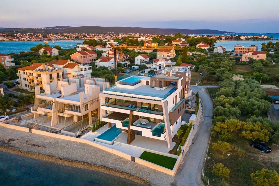 Sukosan: Nowoczesny luksusowy apartament z basenem na parterze przy plaży