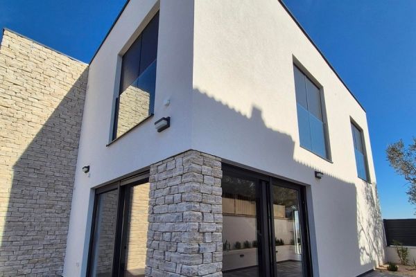 Ten stylowy, dwupiętrowy nowy apartament z ogrodem (ok. 86 m²) i widokiem na morze położony jest w spokojnej okolicy na wyspie Murter, która z lądem (w miejscowości Tisno) jest połączona mostem.