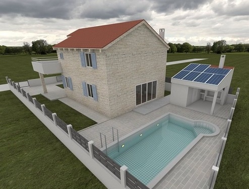 Oferta ta dotyczy nowej budowy śródziemnomorskiego domu rodzinnego z basenem w Vrsi w regionie Zadar.