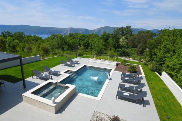 Ta nieruchomość to stylowa i wysokiej jakości luksusowa willa z basenem i widokiem na morze, położona w cichej, śródziemnomorskiej okolicy w regionie Krk, na wyspie o tej samej nazwie, z mostem połączonym z lądem.