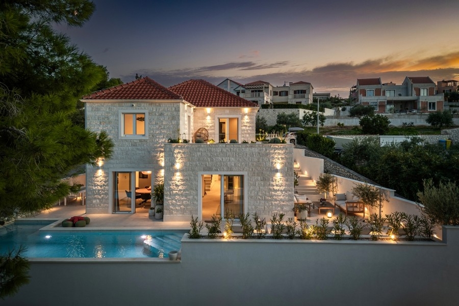 Dom został zbudowany w stylu dalmatyńskim i posiada nastrojowe oświetlenie zewnętrzne. Nieruchomość oferowana jest w pełni umeblowana.