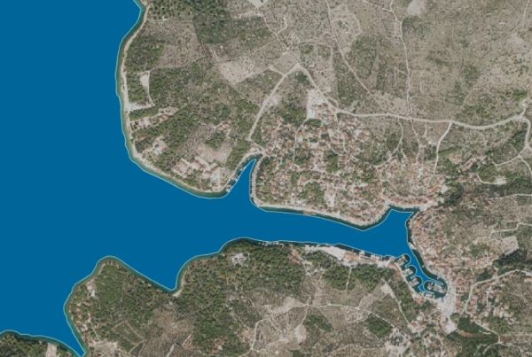 W ofercie jest duża działka budowlana w pierwszym rzędzie od morza, na zachód od wyspy Brac.